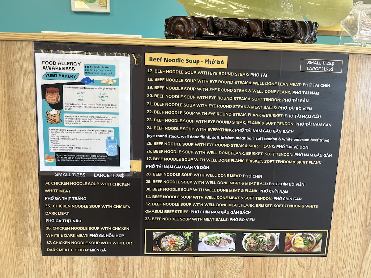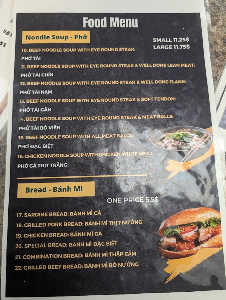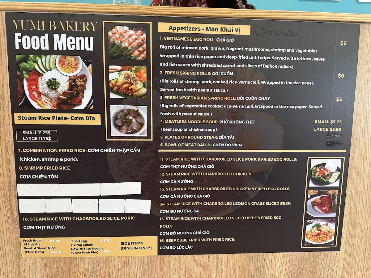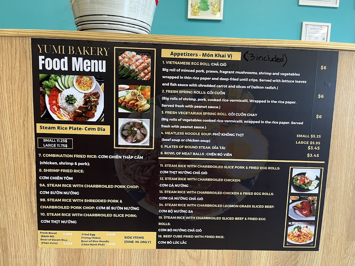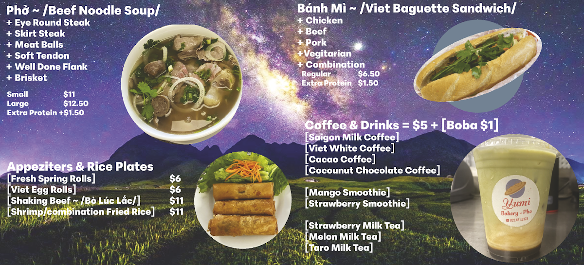 From a reviewer’s perspective, the menu at Yumi Pho & Bakery reflects a focused and well-balanced approach to Vietnamese comfort food, where quality and familiarity take priority over unnecessary complexity. The highlight of the menu is Phở With Soft Tendon Gân Mềm, a dish that clearly represents the kitchen’s attention to traditional flavors. The soft tendon is prepared to achieve a tender, melt-in-the-mouth texture, pairing naturally with a rich, aromatic broth and well-cooked rice noodles. This bowl of phở stands out as a core item on the menu, appealing to diners who value authenticity and depth of flavor. Complementing the savory dishes, Milk Tea adds a refreshing contrast, offering a smooth, lightly sweet option that works equally well as a standalone drink or alongside a hearty meal. Its presence on the menu shows an understanding of modern dining preferences while still aligning with Vietnamese café culture. Another notable item is the Vietnamese Egg Roll Chả Giò, which brings a satisfying crunch and savory filling, making it a reliable choice for appetizers or sharing. Overall, the menu feels cohesive and intentional, centering on a few standout items rather than overwhelming diners with excess choices. Each featured dish plays a clear role, from comforting main courses to refreshing beverages and classic starters, resulting in a menu that feels complete, approachable, and true to Vietnamese culinary traditions.